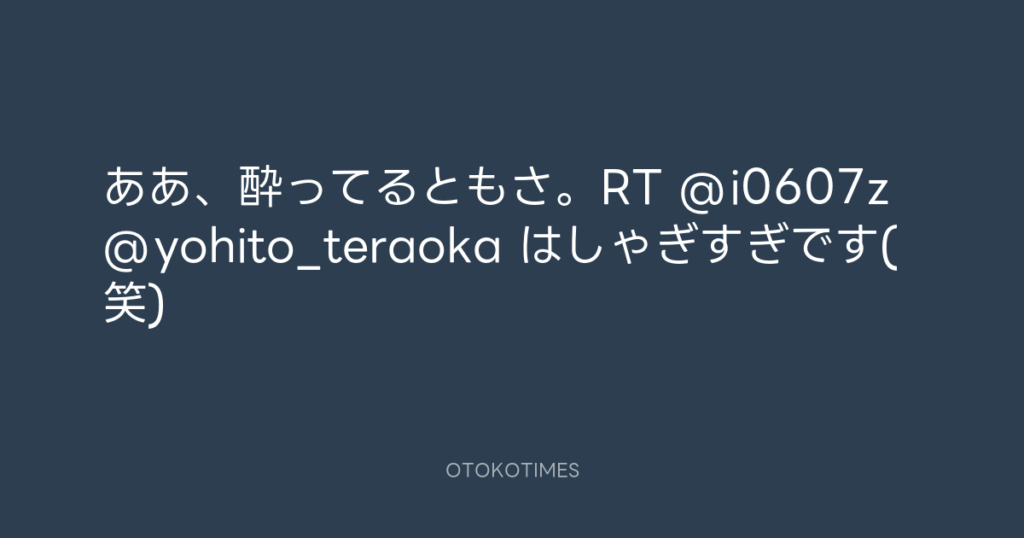 ああ、酔ってるともさ。RT @i0607z @yohito_teraoka はしゃぎすぎです(笑) -