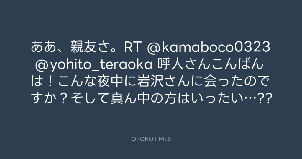 ああ、親友さ。RT @kamaboco0323 @yohito_teraoka 呼人さんこんばんは!こんな夜中... -