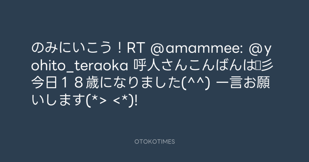 のみにいこう!RT @amammee: @yohito_teraoka 呼人さんこんばんは☆彡 今日18歳に... -