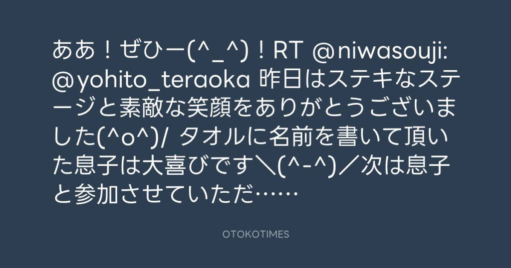 ああ!ぜひー(^_^)!RT @niwasouji: @yohito_teraoka 昨日はステキなステージと素... -