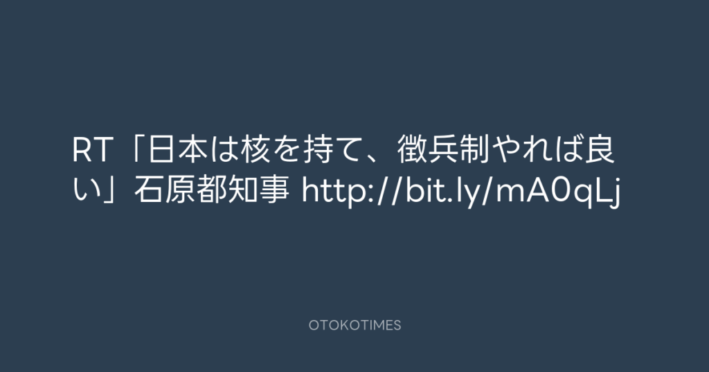 RT「日本は核を持て、徴兵制やれば良い」石原都知事 http://bit.ly/mA0qLj -