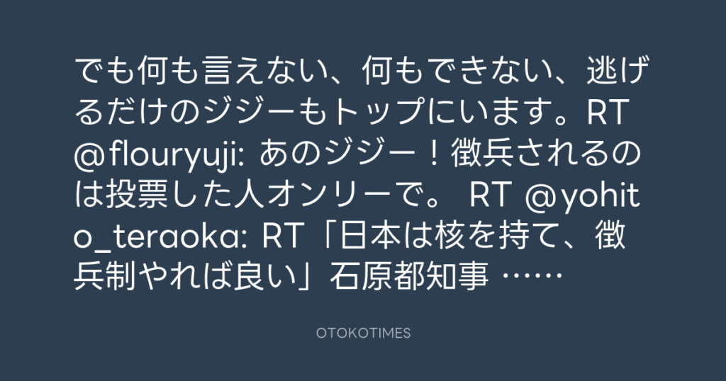 でも何も言えない、何もできない、逃げるだけのジジーもトップにいます。RT @flour... -