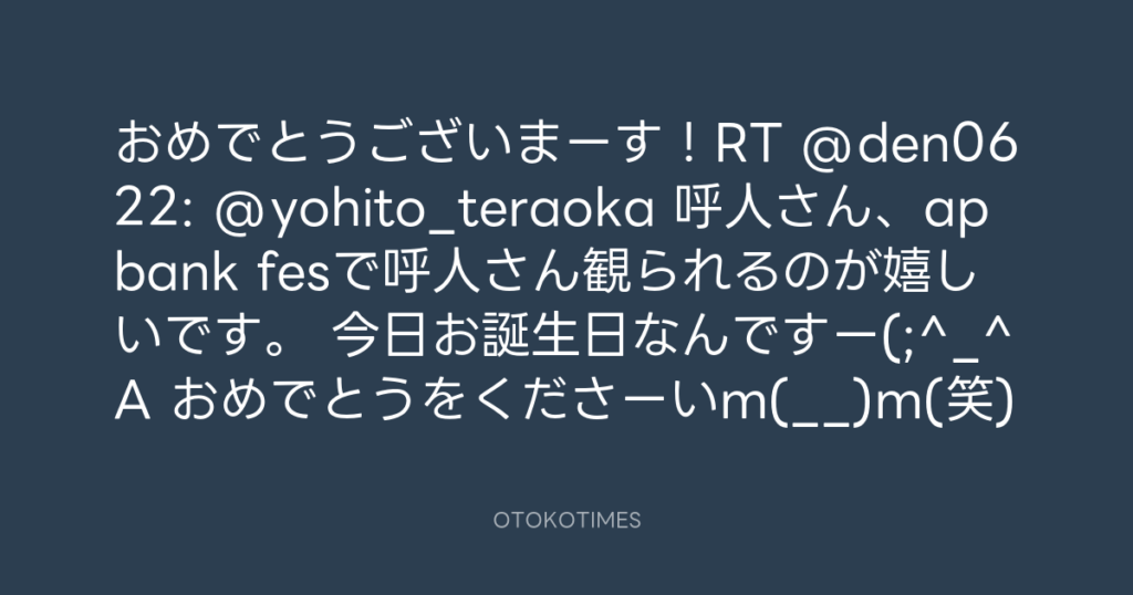 おめでとうございまーす!RT @den0622: @yohito_teraoka 呼人さん、ap bank fesで... -
