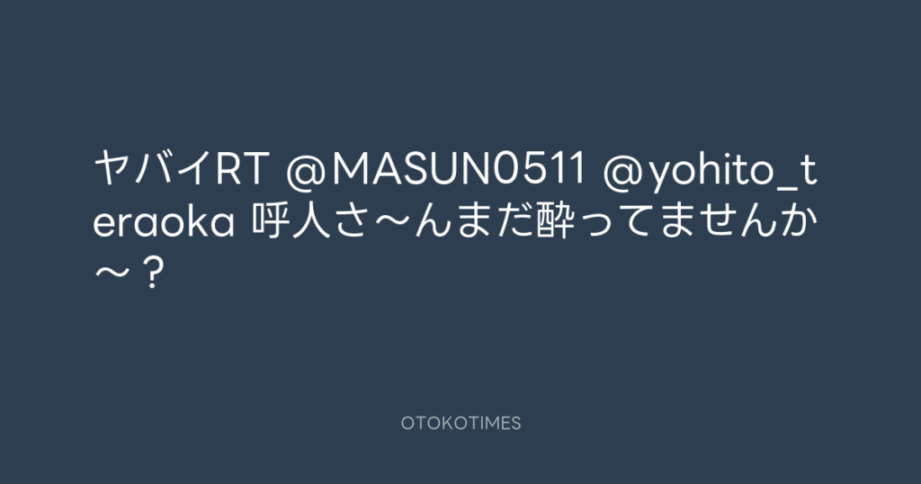 ヤバイRT @MASUN0511 @yohito_teraoka 呼人さ~んまだ酔ってませんか~? -