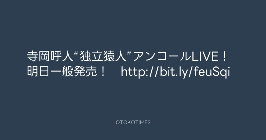 寺岡呼人“独立猿人”アンコールLIVE!明日一般発売! http://bit.ly/feuSqi -