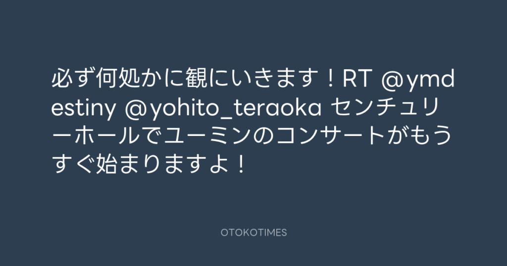 必ず何処かに観にいきます!RT @ymdestiny @yohito_teraoka センチュリーホールで... -