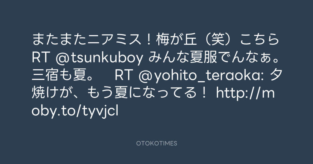 またまたニアミス!梅が丘(笑)こちらRT @tsunkuboy みんな夏服でんなぁ。三宿も... -