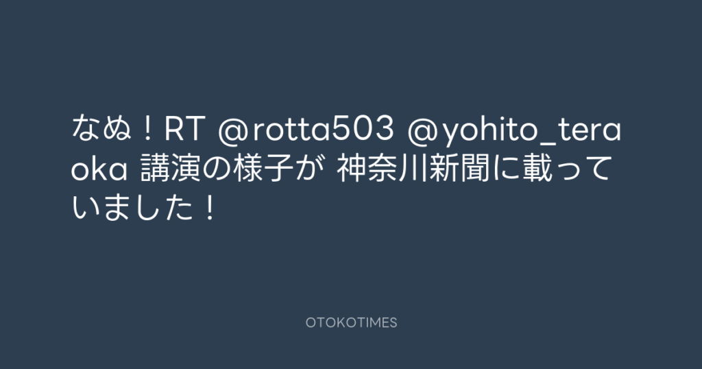 なぬ!RT @rotta503 @yohito_teraoka 講演の様子が 神奈川新聞に載っていました! -