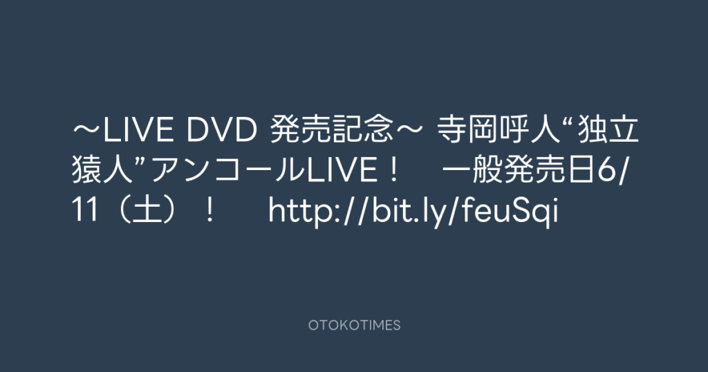 〜LIVE DVD 発売記念〜 寺岡呼人“独立猿人”アンコールLIVE! 一般発売日6/11(土... -