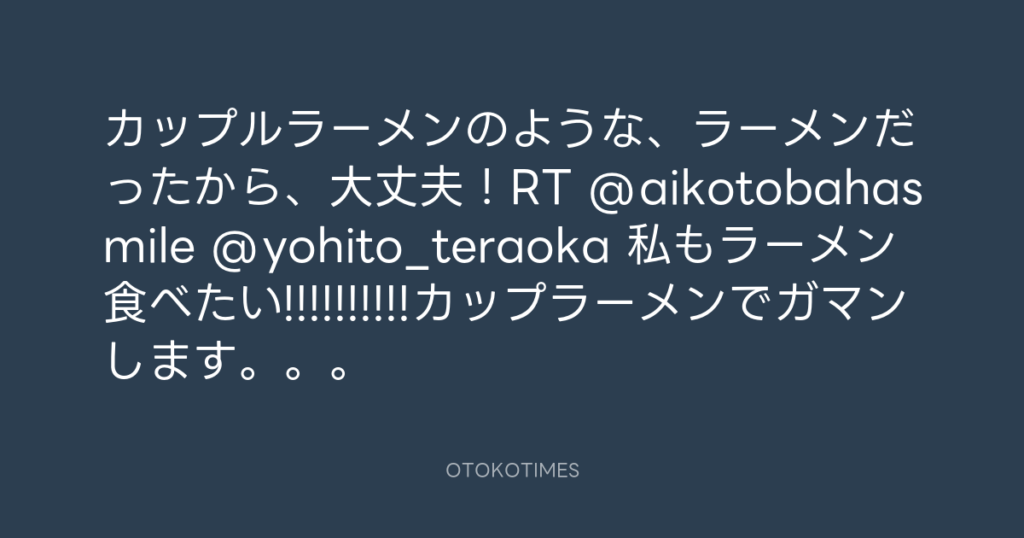 カップルラーメンのような、ラーメンだったから、大丈夫!RT @aikotobahasmile @yo... -