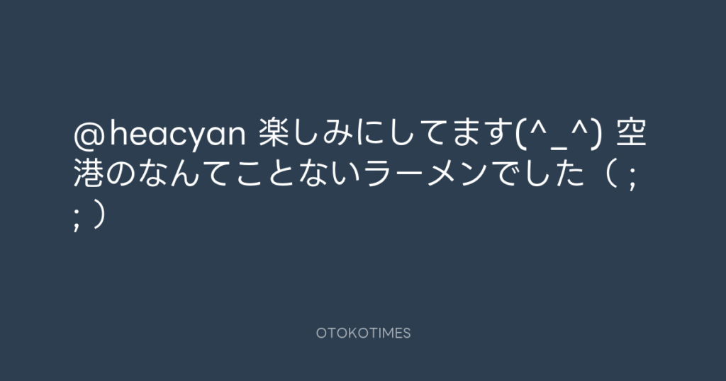 @heacyan 楽しみにしてます(^_^) 空港のなんてことないラーメンでした( ; ; ) -