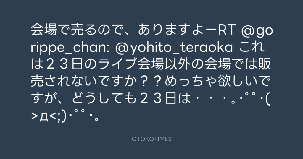 会場で売るので、ありますよーRT @gorippe_chan: @yohito_teraoka これは23日の... -