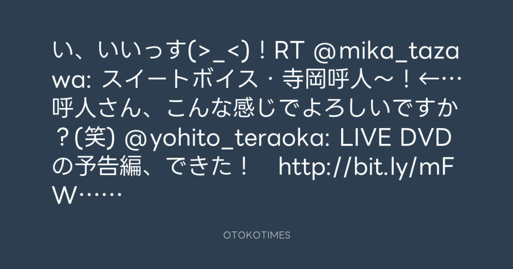 い、いいっす(>_<)!RT @mika_tazawa: スイートボイス・寺岡呼人〜!←…呼人... -