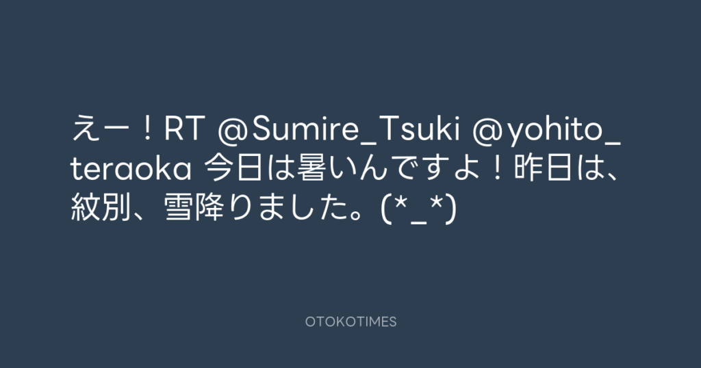 えー!RT @Sumire_Tsuki @yohito_teraoka 今日は暑いんですよ!昨日は、紋別、雪降... -