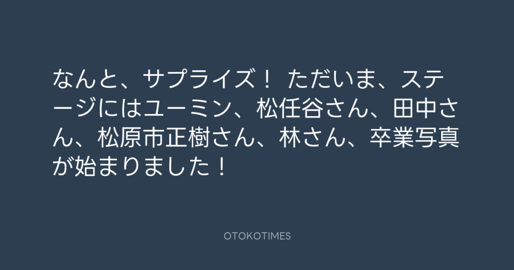 なんと、サプライズ! ただいま、ステージにはユーミン、松任谷さん、田中さん、松... -