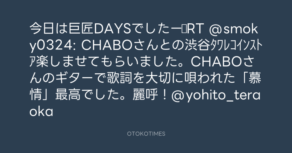 今日は巨匠DAYSでしたー♪RT @smoky0324: CHABOさんとの渋谷タワレコインストア楽しませても... -