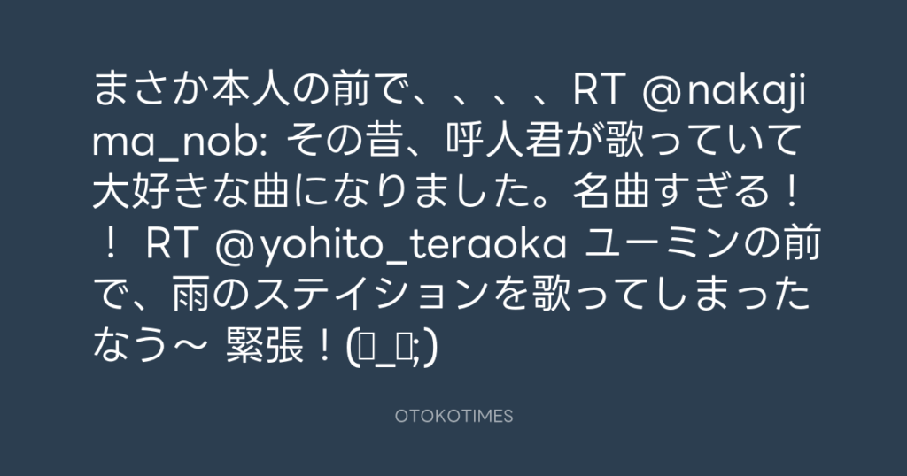 まさか本人の前で、、、、RT @nakajima_nob: その昔、呼人君が歌っていて大好きな... -