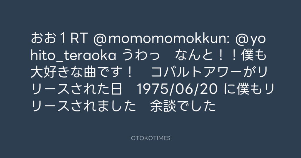 おお1RT @momomomokkun: @yohito_teraoka うわっ なんと!!僕も大好きな曲です... -