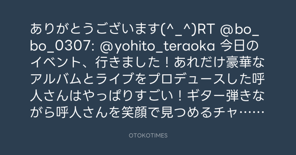 ありがとうございます(^_^)RT @bo_bo_0307: @yohito_teraoka 今日のイベント、行き... -