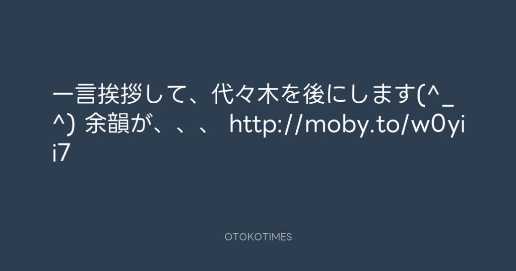 一言挨拶して、代々木を後にします(^_^) 余韻が、、、 http://moby.to/w0yii7 -