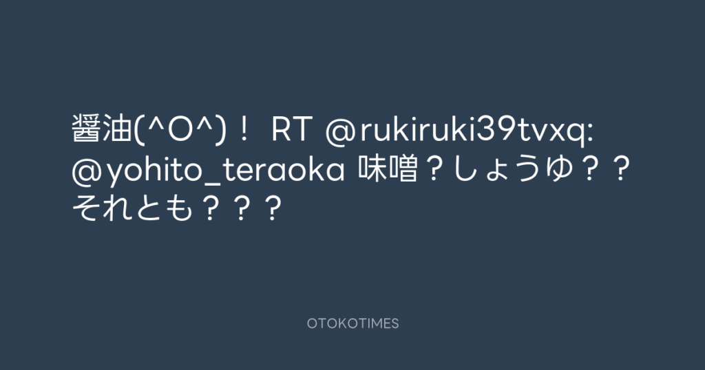 醤油(^O^)! RT @rukiruki39tvxq: @yohito_teraoka 味噌?しょうゆ??それとも??? -