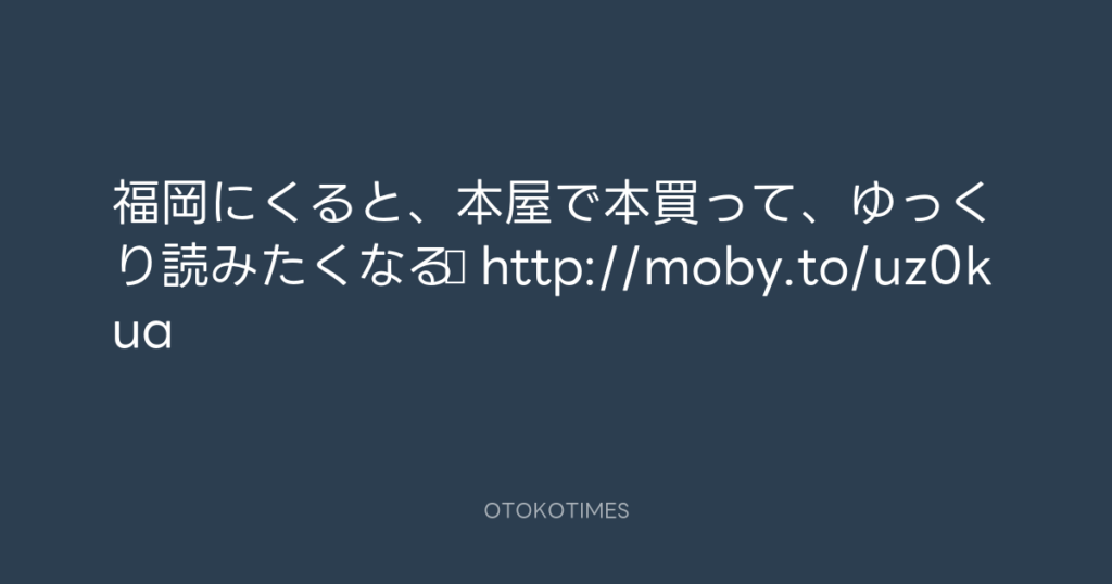 福岡にくると、本屋で本買って、ゆっくり読みたくなる♪ http://moby.to/uz0kua -