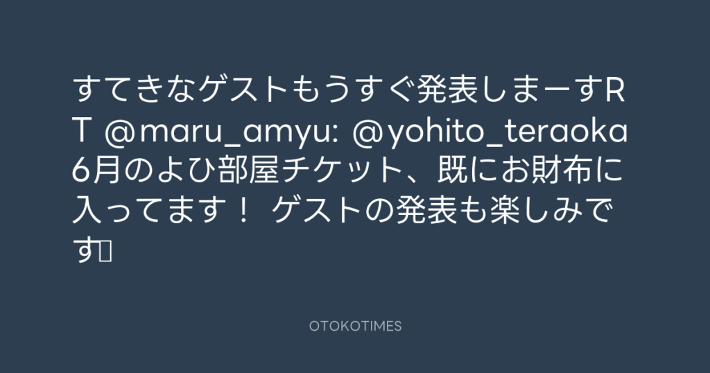 すてきなゲストもうすぐ発表しまーすRT @maru_amyu: @yohito_teraoka 6月のよひ部...