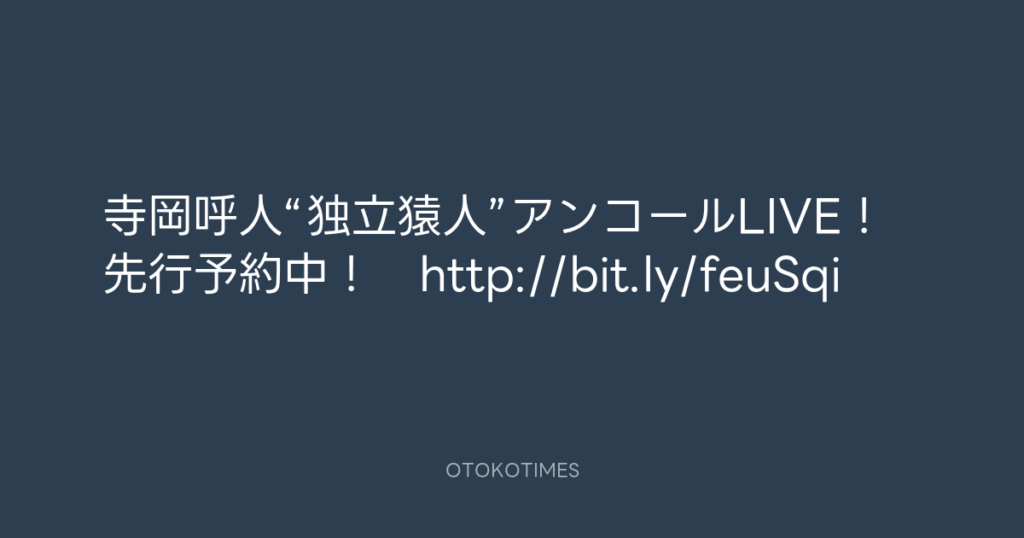 寺岡呼人“独立猿人”アンコールLIVE!先行予約中! http://bit.ly/feuSqi -