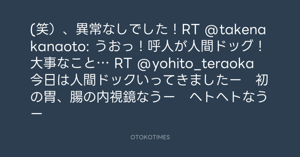 (笑)、異常なしでした!RT @takenakanaoto: うおっ!呼人が人間ドッグ!大事なこ... -