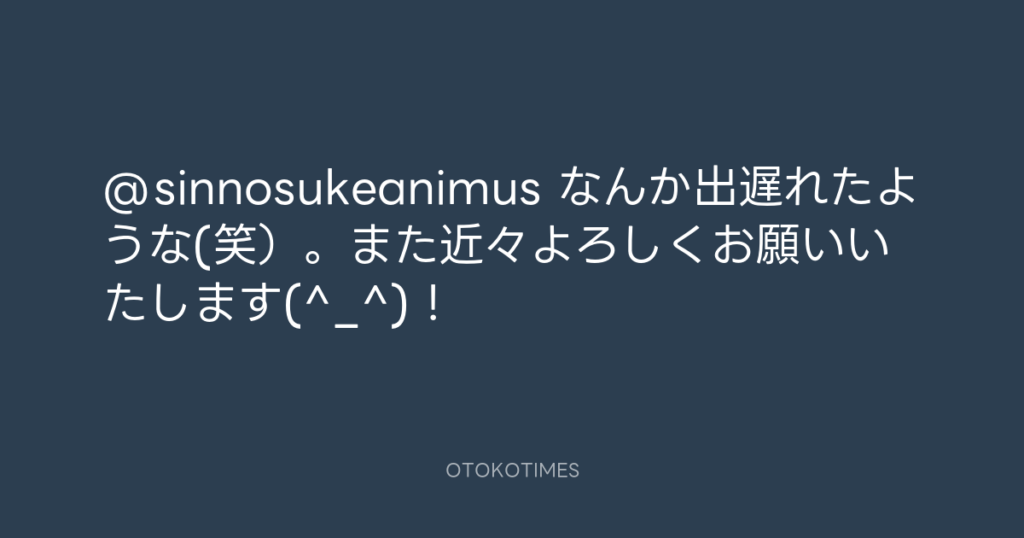 @sinnosukeanimus なんか出遅れたような(笑)。また近々よろしくお願いいたします(... -