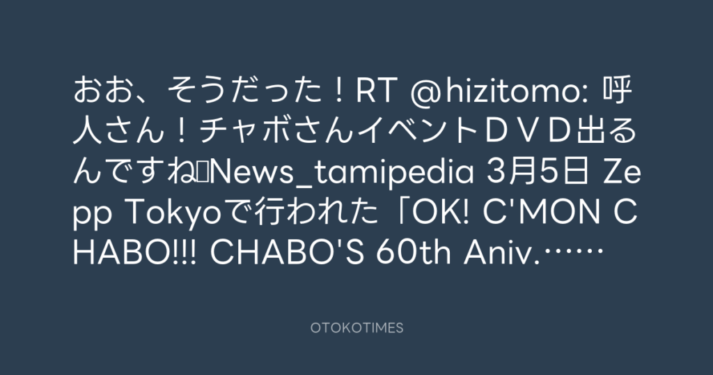 おお、そうだった!RT @hizitomo: 呼人さん!チャボさんイベントDVD出るんです... -