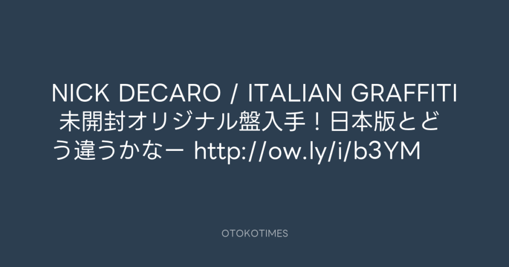 NICK DECARO / ITALIAN GRAFFITI 未開封オリジナル盤入手!日本版とどう違うかなー... -