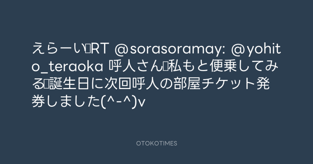 おめでとうございます(^_^)!RT @marintiraymi: @yohito_teraoka 呼人さ~ん! 今日... -