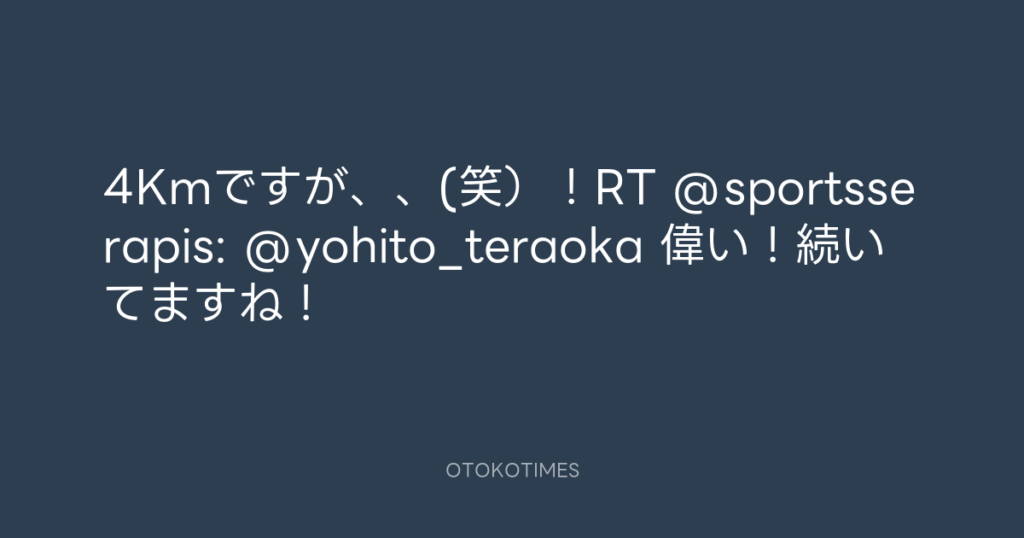 4Kmですが、、(笑)!RT @sportsserapis: @yohito_teraoka 偉い!続いてますね! -