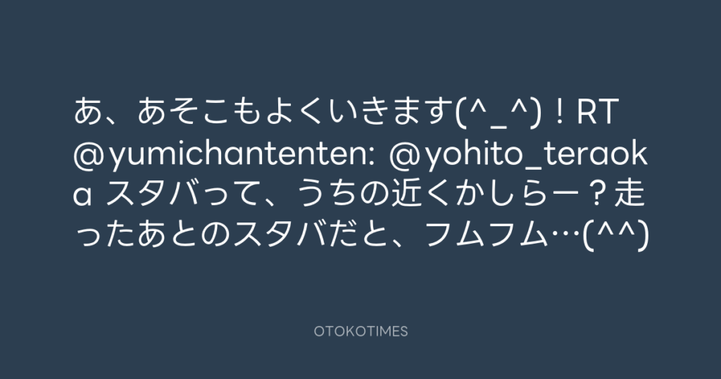 あ、あそこもよくいきます(^_^)!RT @yumichantenten: @yohito_teraoka スタバって... -