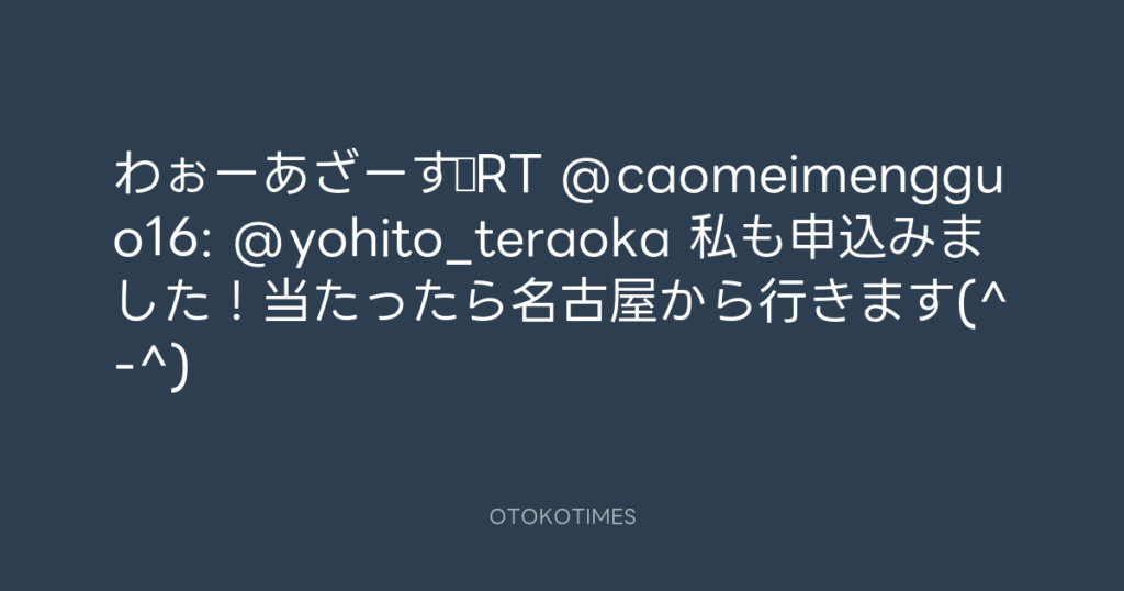 わぉーあざーす♪RT @caomeimengguo16: @yohito_teraoka 私も申込みました!当たっ... -