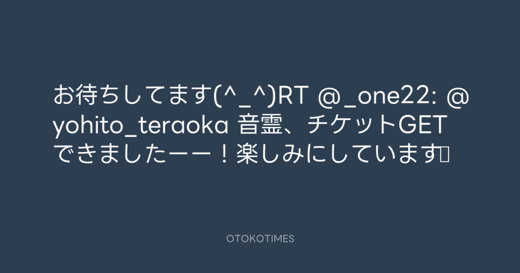 お待ちしてます(^_^)RT @_one22: @yohito_teraoka 音霊、チケットGETできましたー... -