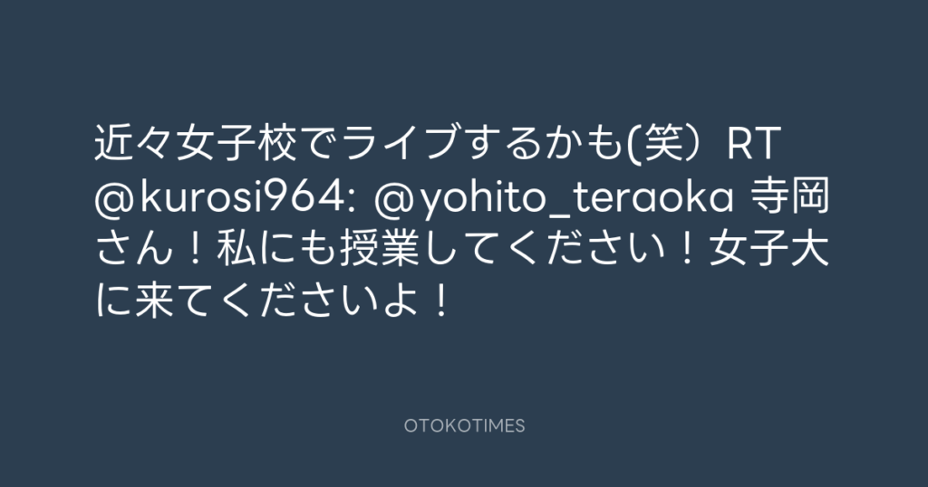 近々女子校でライブするかも(笑)RT @kurosi964: @yohito_teraoka 寺岡さん!私に... -
