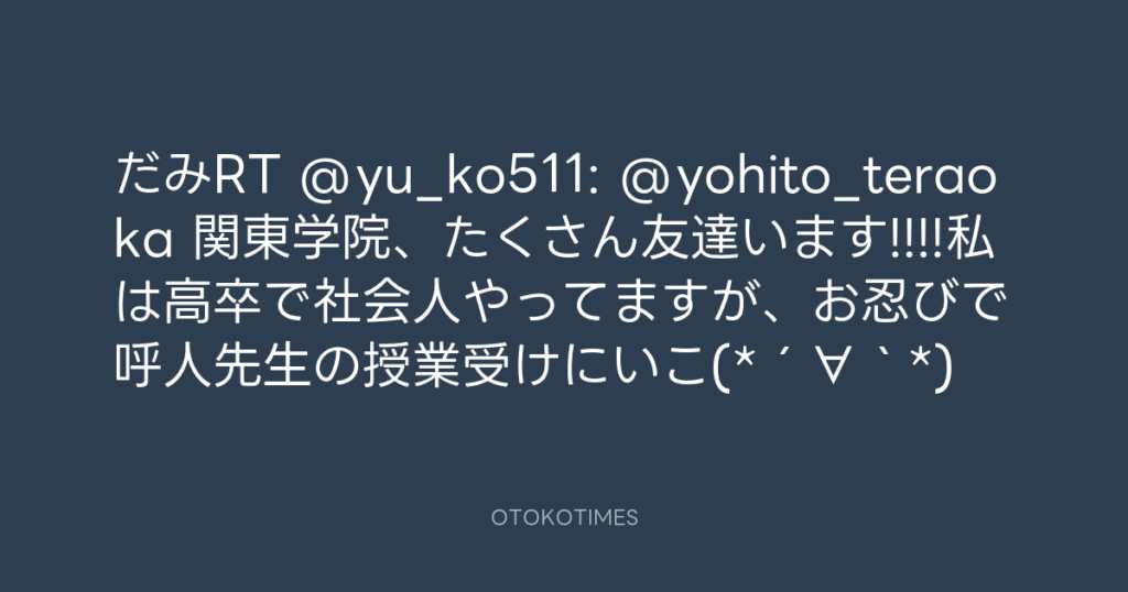 だみRT @yu_ko511: @yohito_teraoka 関東学院、たくさん友達います!!!!私は高卒で... -
