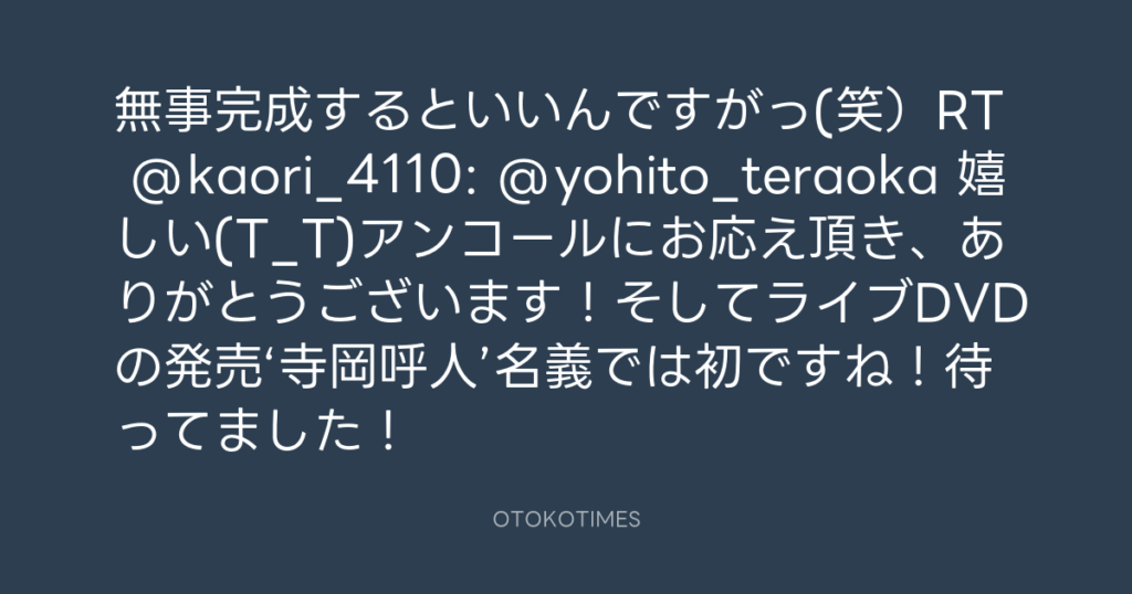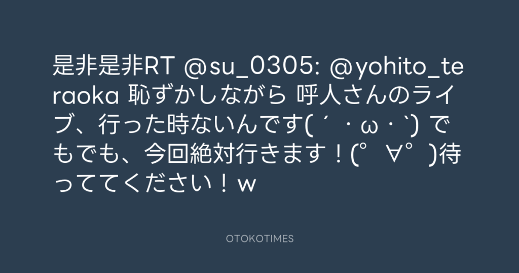 是非是非RT @su_0305: @yohito_teraoka 恥ずかしながら 呼人さんのライブ、行った... -