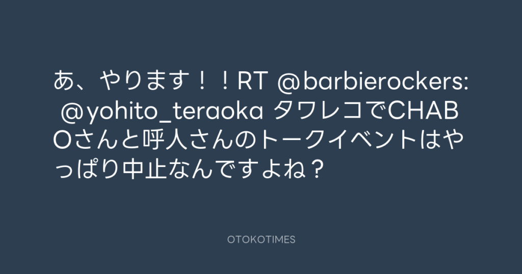 あ、やります!!RT @barbierockers: @yohito_teraoka タワレコでCHABOさんと呼人... -