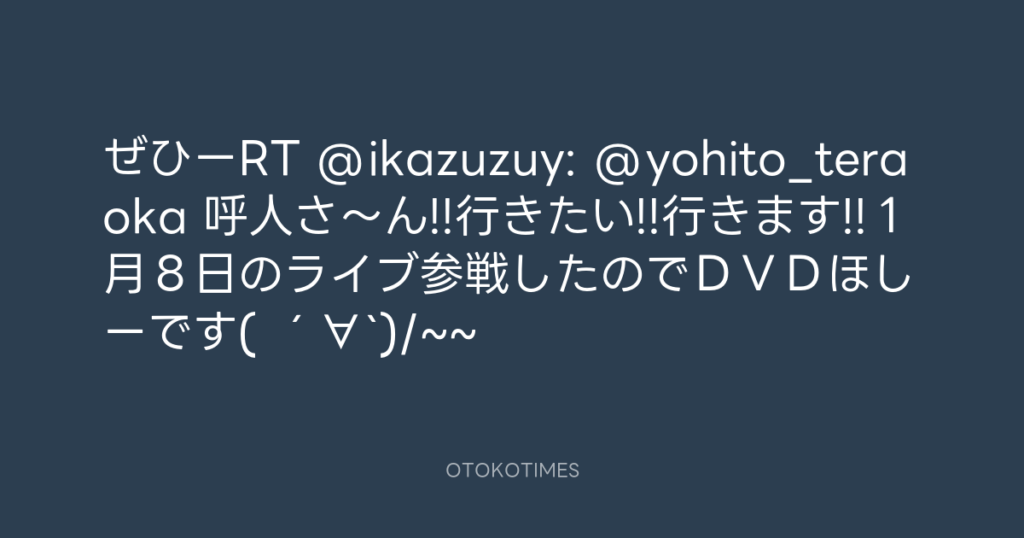 ぜひーRT @ikazuzuy: @yohito_teraoka 呼人さ〜ん!!行きたい!!行きます!!1月8日... -