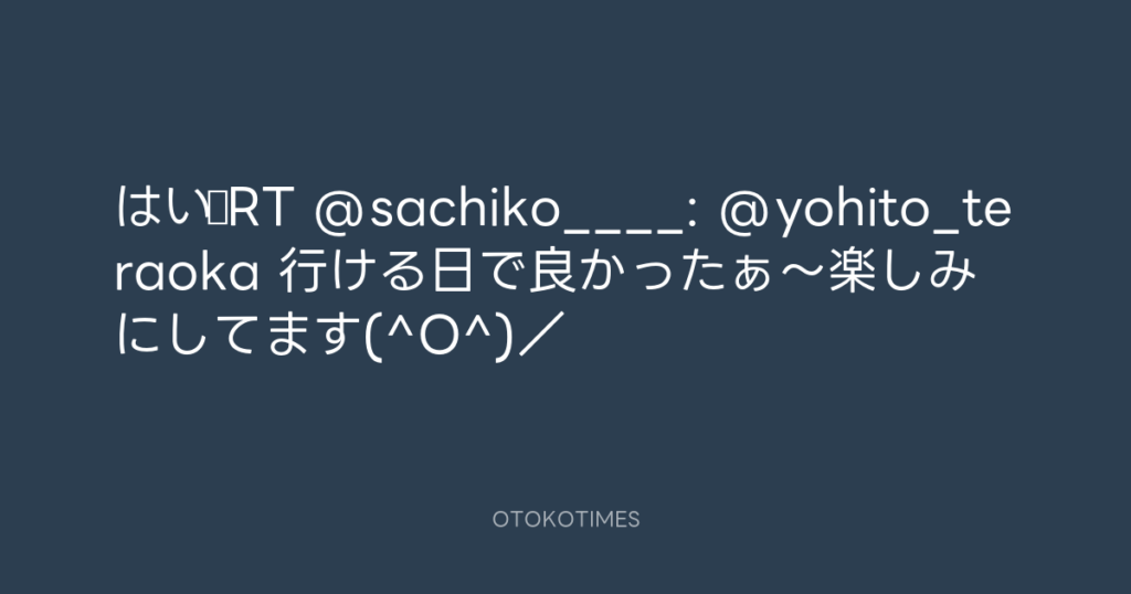 はい♪RT @sachiko____: @yohito_teraoka 行ける日で良かったぁ~楽しみにしてます(... -