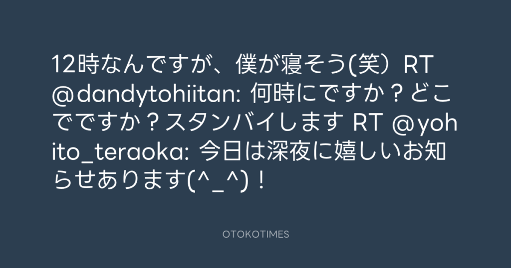 12時なんですが、僕が寝そう(笑)RT @dandytohiitan: 何時にですか?どこでですか...