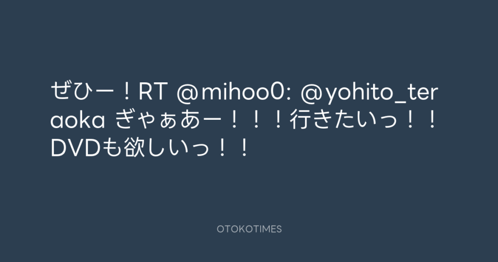 ぜひー!RT @mihoo0: @yohito_teraoka ぎゃぁあー!!!行きたいっ!!DVDも欲しい... -