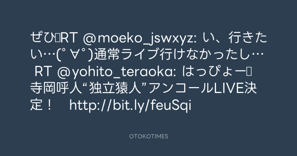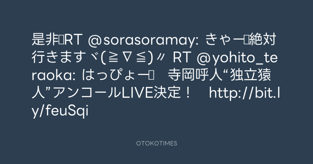 はっぴょー♪ 寺岡呼人“独立猿人”アンコールLIVE決定! http://bit.ly/feuSqi -