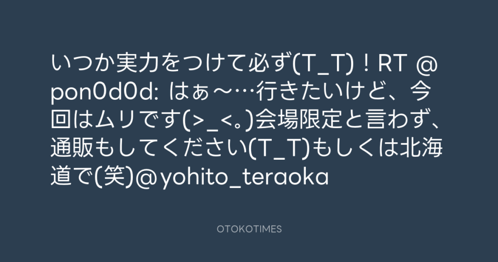 いつか実力をつけて必ず(T_T)!RT @pon0d0d: はぁ〜…行きたいけど、今回はムリです... -