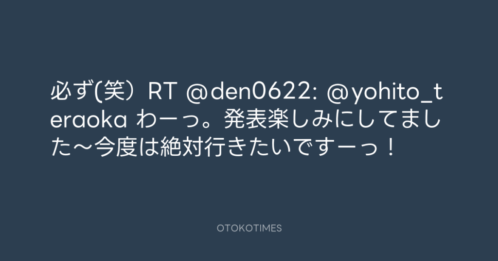 必ず(笑)RT @den0622: @yohito_teraoka わーっ。発表楽しみにしてました〜今度は... -