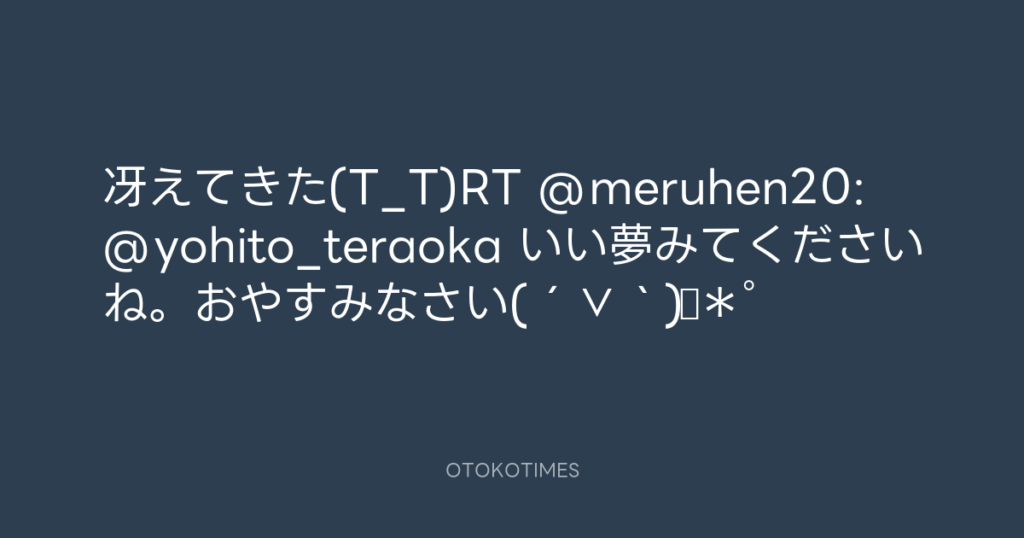 冴えてきた(T_T)RT @meruhen20: @yohito_teraoka いい夢みてくださいね。おやすみ...