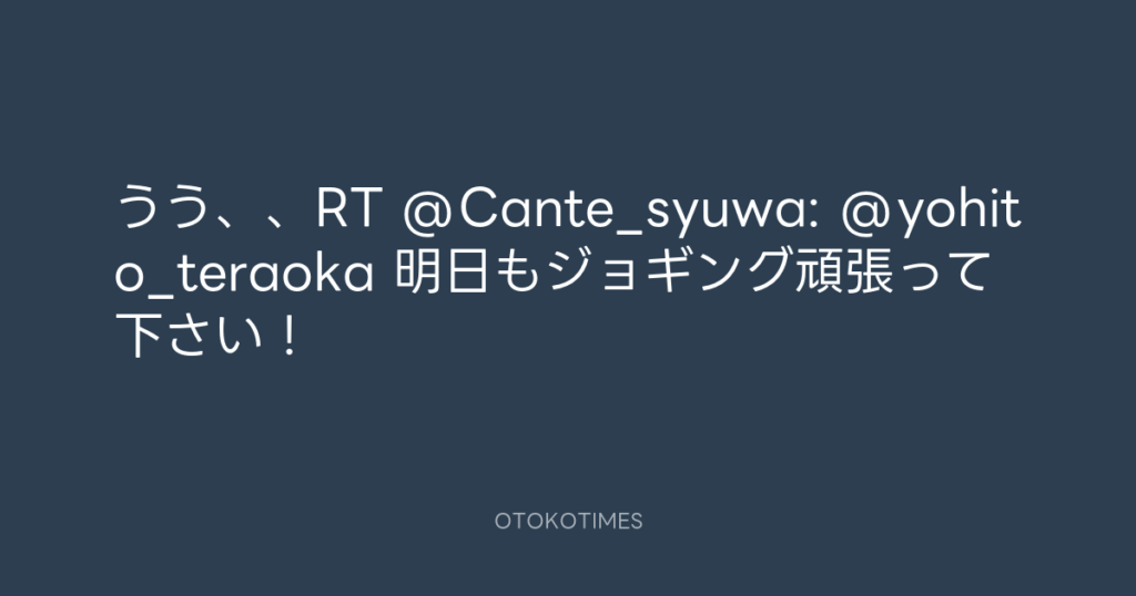 うう、、RT @Cante_syuwa: @yohito_teraoka 明日もジョギング頑張って下さい! -